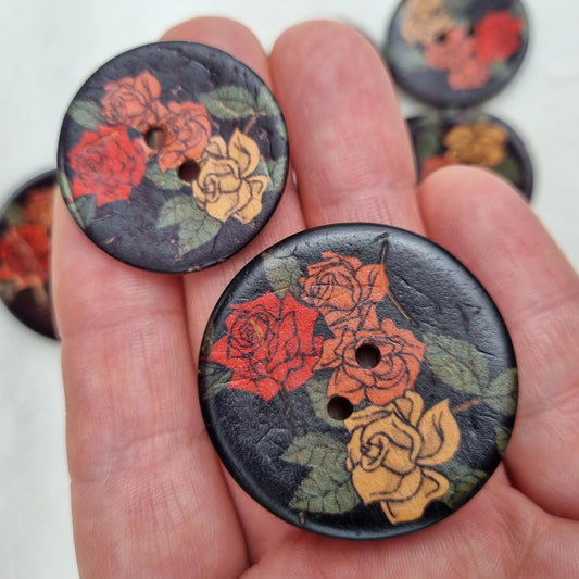 Boutons en Coquille de Coco – Motif Roses Multicolores – 30 mm / 40 mm