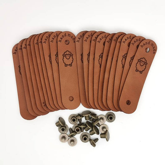 Étiquette "Handmade" en Imitation Cuir avec Motif Mouton – 1 Paire avec Vis